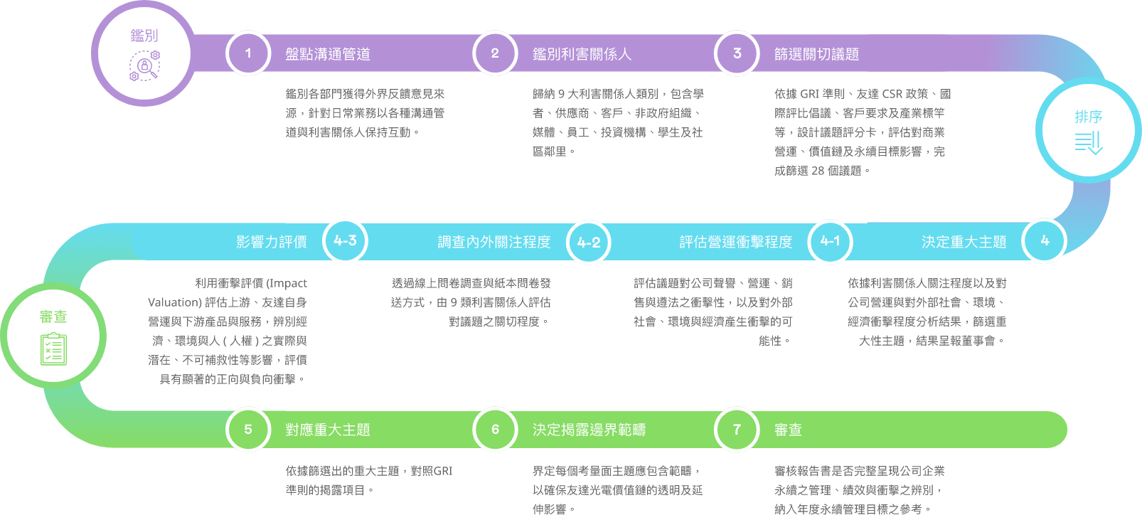 技術創新與市場佈局 | 透過客戶經營、產品營運、市場佈局、新事業開發等策略制定,及研發技術導入、創新作法等,是公司競爭力的核心關鍵 | 直接 | GRI 204 GRI 308 GRI 414 |