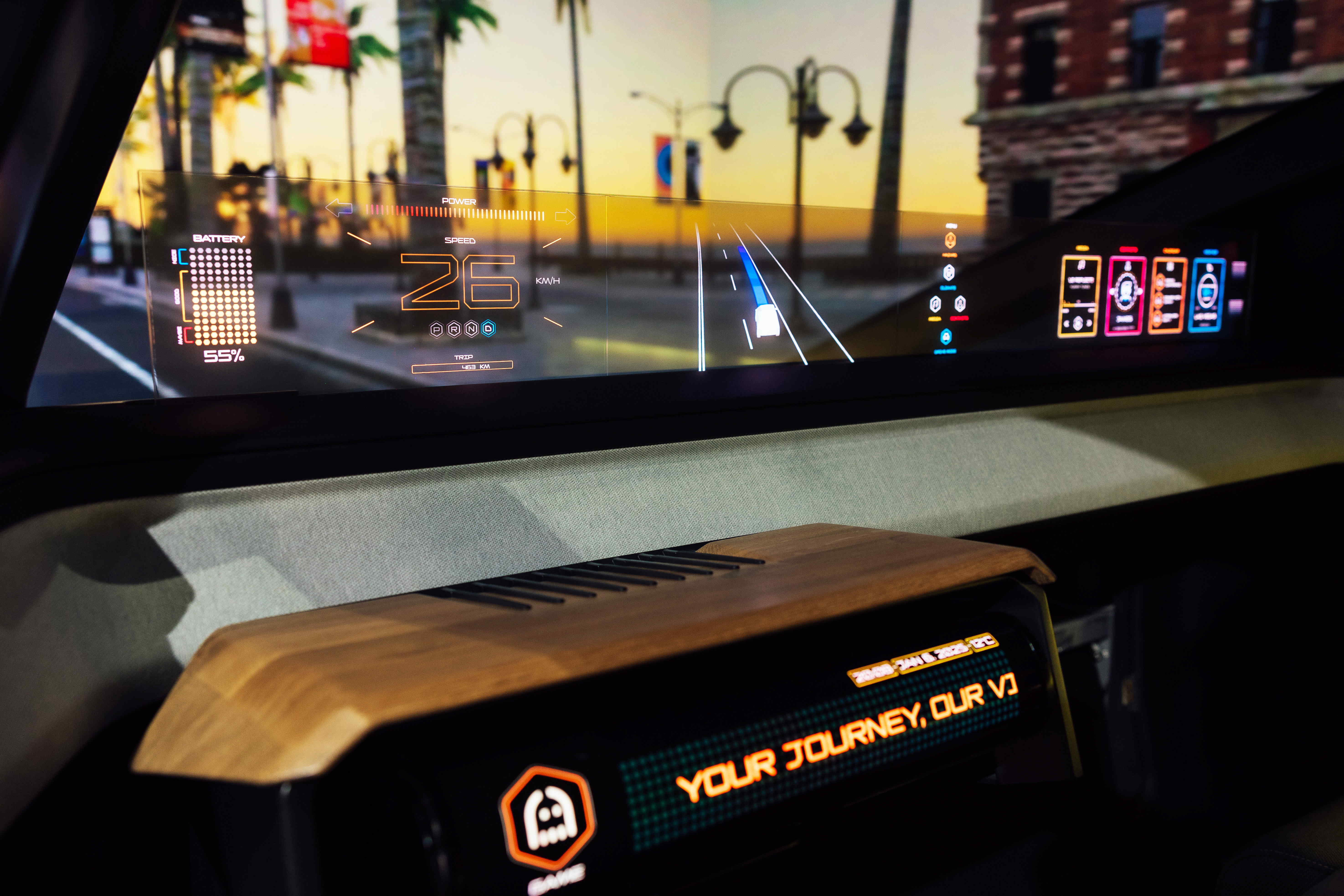 The XR Interactive Window utilizes AI-generated computing. In the future application, passengers can simply circle items displayed on the window to interact with them or obtain relevant information about objects outside the vehicle as they pass by. This immersive, interactive and realistic experience can also be extended to mixed reality games that showcase its powerful computing capacity.