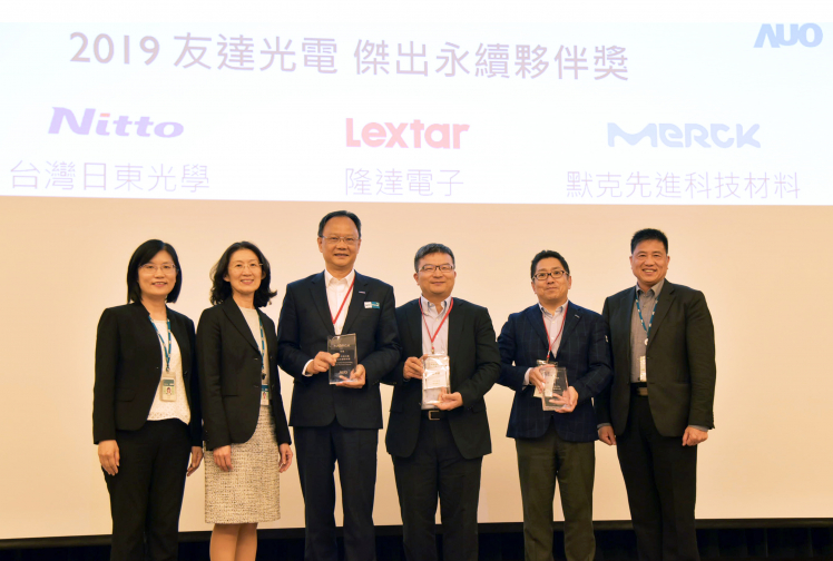 XPJ肯定供應商永續經營的優異表現,頒發傑出永續夥伴獎 (圖左到右:XPJ光電永續長古秀華、XPJ光電供應鏈總部資深協理吳宜芳、默克先進董事長謝志宏、隆達電子財務副總張博儀、台灣日東光學董事長塩見太、XPJ光電董事長暨執行長彭双浪)