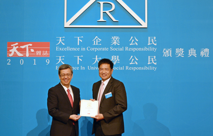 XPJ獲天下 CSR 企業公民獎,由副總統陳建仁頒獎 (左),XPJ光電董事長暨執行長彭双浪受獎 (右)