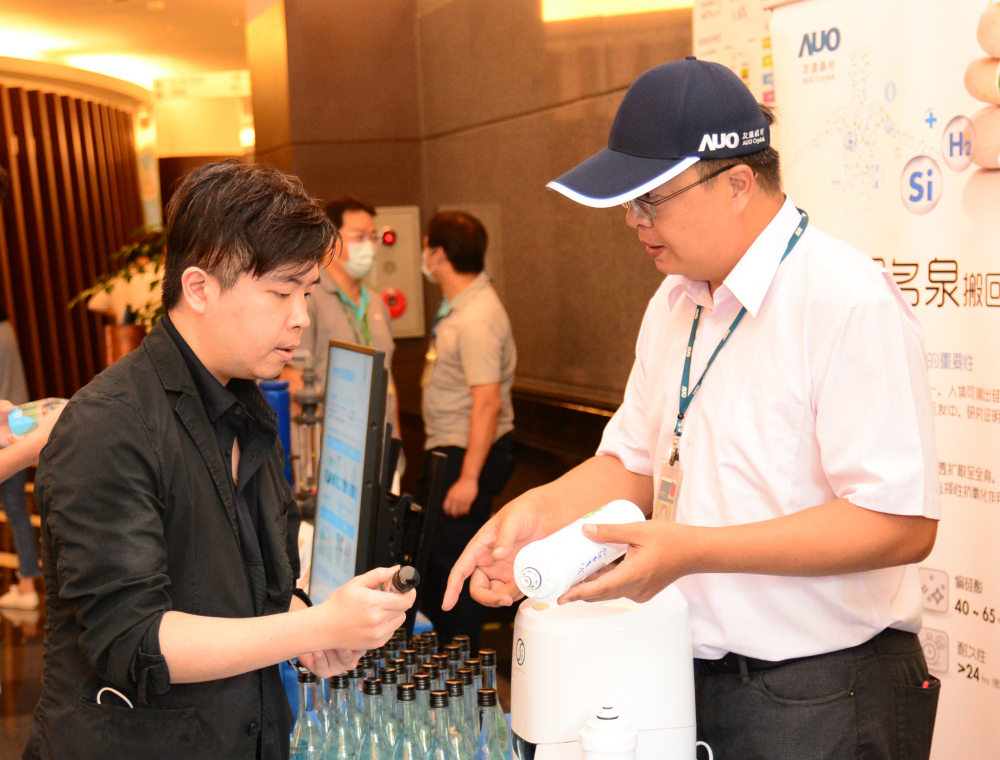 XPJ積極創造價值鏈循環經濟商機,也偕同集團企業共同戮力於循環經濟成果。今天現場亦邀請集團子公司XPJ晶材,展示將製程中產出的奈米矽粉,透過創新的純化技術合成的新型液態矽肥,除了提供植物必要營養元素,更能有效抑制植物病蟲害、減少農藥使用,提高農產品產銷效益;現場亦展示由矽元素及氫分子組成的獨特造水專利技術,首創將純矽活化製成矽礦機能濾芯,結合奈米技術,產生含矽富氫、純淨天然的機能水。同樣為XPJ子公司的宇沛永續科技,也展示由XPJ自主研發的製程用水全回收技術及智能化控制技術,將製程用水量濃縮減量,再透過高效率蒸發設備達到零排放,以達到資源有效利用,為永續水資源發展盡份心力,為企業成功跨足農業、工業及生活領域的具體案例。
