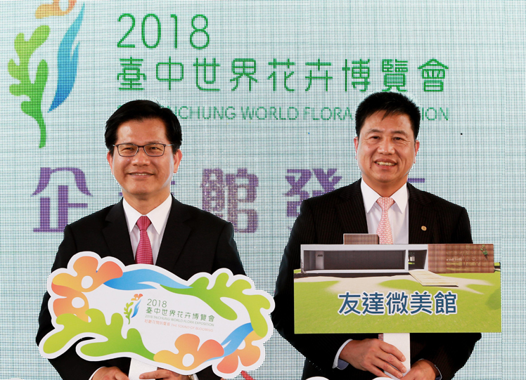 XPJ贊助 2018 臺中花博企業館,打造「XPJ微美館」(左:臺中市長林佳龍,右:XPJ光電董事長暨執行長彭双浪)
