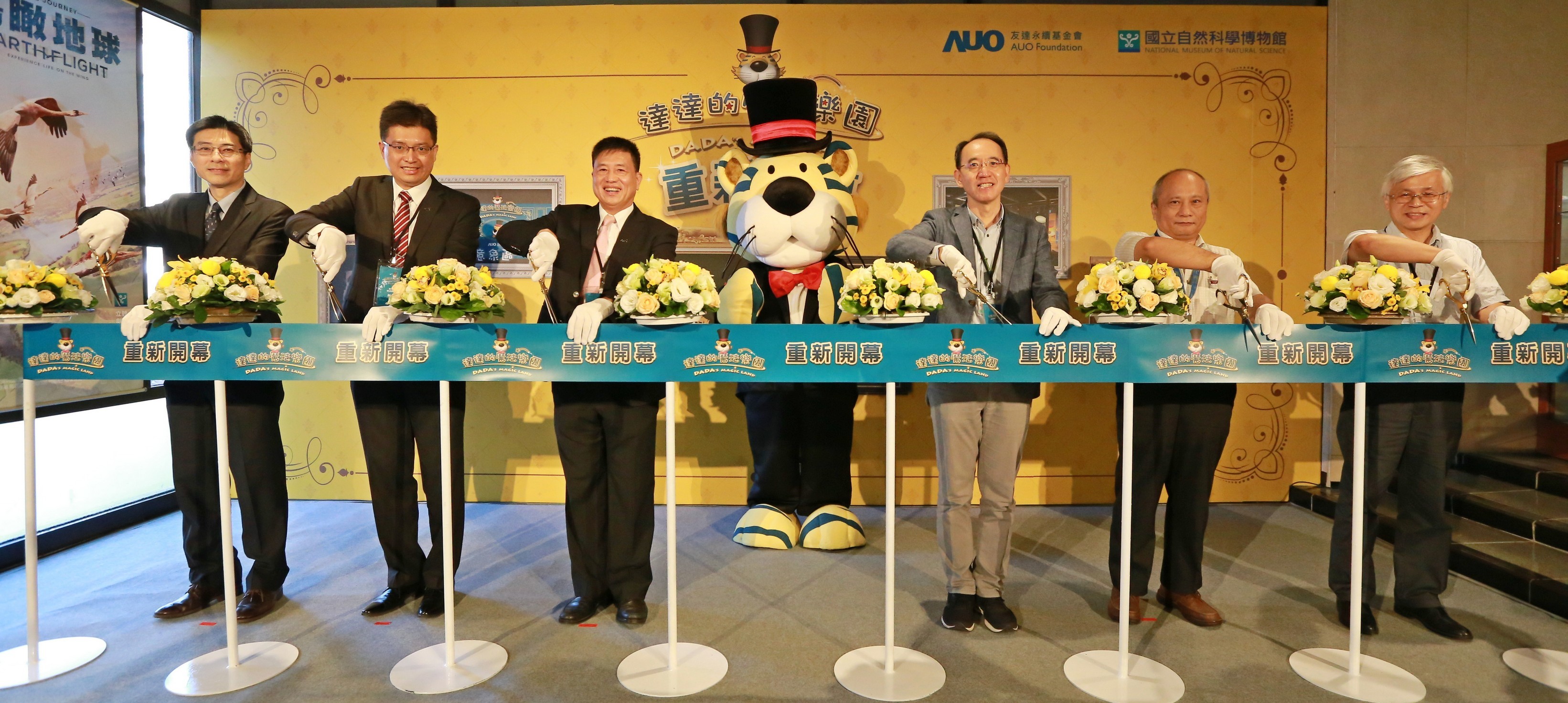 ![]() XPJ永續基金會董事長彭双浪 (左三) 以及科博館館長焦傳金 (左四) 共同舉行達達的魔法樂園重新開幕儀式